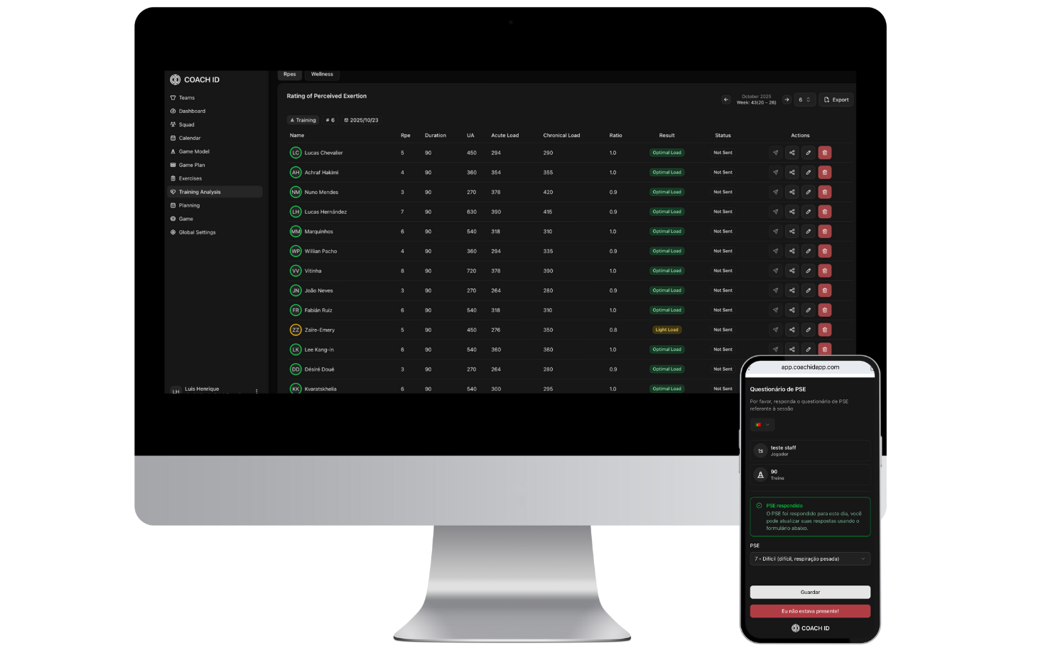 "Uma das valências da Coach ID é o controlo e avaliação do treino, e permite-nos monitorizar, mesmo à distância, a intensidade de carga para os jogadores."